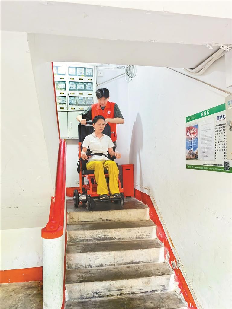 目前光华街社区有2台电动爬楼机,走着走着会跟着本人节拍调理”。可是机械很平稳,居平易近若有需要可联系工做坐登记借用,上下楼梯比力费劲!